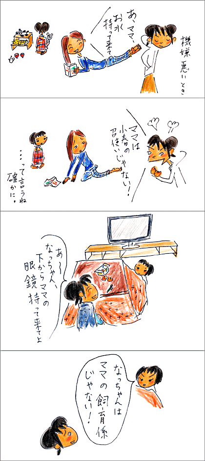 家族絵日記 vol.16 静岡県・高山家 2013年12月09日 「おでこ全開にされたんです」奥さんは口をとがらせておっしゃいました。 出産直後の写真には、旦那さんが奥さんの前髪を手で押さえつけて おでこがど〜〜んと写っていたそうです。 「なんでそんなことしたかわからない」 ご主人は笑いながらそうおっしゃっていましたが、 ... 続きを読む 「おでこ全開にされたんです」奥さんは口をとがらせておっしゃいました。 出産直後の写真には、旦那さんが奥さんの前髪を手で押さえつけて おでこがど〜〜んと写っていたそうです。 「なんでそんなことしたかわからない」 ご主人は笑いながらそうおっしゃっていましたが、 その翌日、我が家で起こった小さな事件をきっかけで、私はわかってしまいました。 ↓ http://enikki.cocolog-nifty.com/iriephoto/2013/12/vol475-68c3.html 泣きじゃくる小春がかわいくって愛おしくって、 気がついたらおでこを触っていました。 はっ!高山さんのご主人は赤ちゃんを産んでくれた奥さんが愛おしくてしょうがなかったんだ! 素敵な素敵なご一家でした!