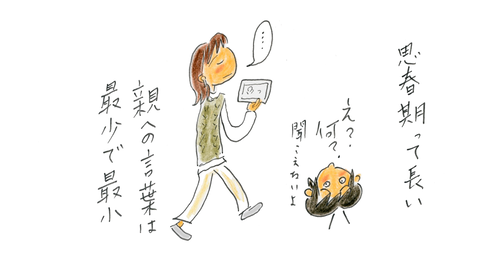 思春期の塩 2021年05月05日 思春期って長いね。小春の塩対応にすっかり慣れてきてしまった今日このごろ。 ... 続きを読む いっつも声小さいし、あんまり喋んないし、聞こえなくて、え?って聞き返すと答えてくれなかったりする未だ思春期(長っ!)の小春。塩対応に慣れ過ぎて、ほんのちょっと甘いとすんごい嬉しくなっちゃう。::::::::::::::::::::: 本日も更新! ::::::水曜日のフクダカヨ絵日記::::::::::::::::::::: タグ :#思春期#女子#高2